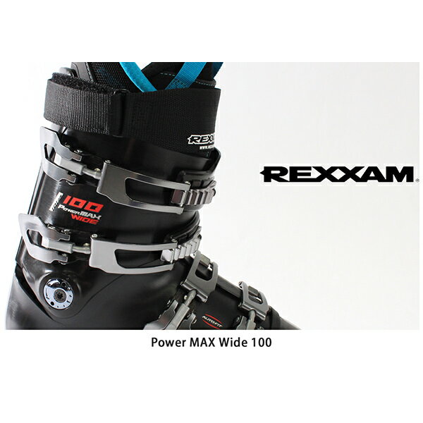 REXXAM レクザム スキーブーツ ■PowerMAX W100 フレックス(硬さ): 100 ラスト(幅): SemiAutoFit W / 100-105mm(260) size: 240〜275 Forward Lean Angle: 12.5度 Weight: 1910g(265片足) color: Black shell: ポリオレフィン / TPU buckle: RX-B inner: BX-S Function POWER CONCEPT RX-Bバックル アジャスタブル・フック 27-TWIN CANT システム 軽量フットベッド MCパワーベルト フレックスコントロール(1点止め) ボトムプロテクター ゲレンデをオールマイティに楽しむ中級スキーヤーに最適のフレックス100モデル。